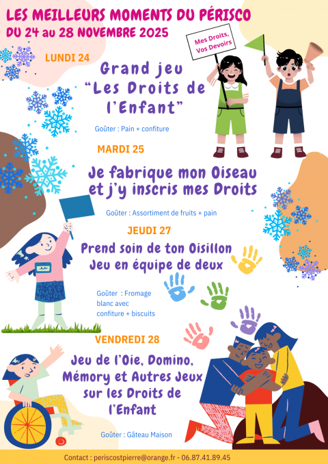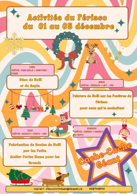 Si vous souhaitez signaler l'absence de votre enfant (rendez-vous, enfant malade…) le jour-même, merci de la signaler sur le Portail Famille et d’envoyer un mail avant 18h30 à l’adresse suivante : periscostpierre@orange.fr ou par tel : 06-87-41-89-45