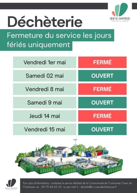 Ouverture/fermeture déchèterie durant les ponts de mai 2026