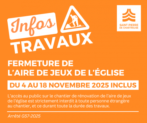 FERMETURE DE L'AIRE DE JEUX SITUÉE À CÔTÉ DE L'ÉGLISE DE SAINT-PIERRE DE CHARTREUSE DU
