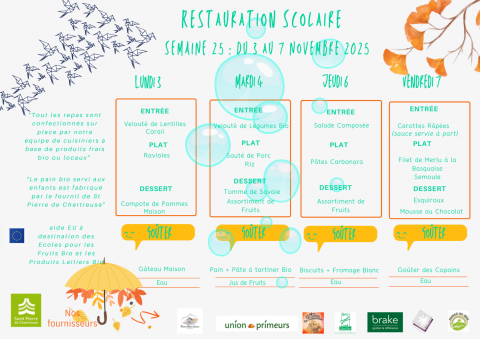 MENU DE LA SEMAINE :
